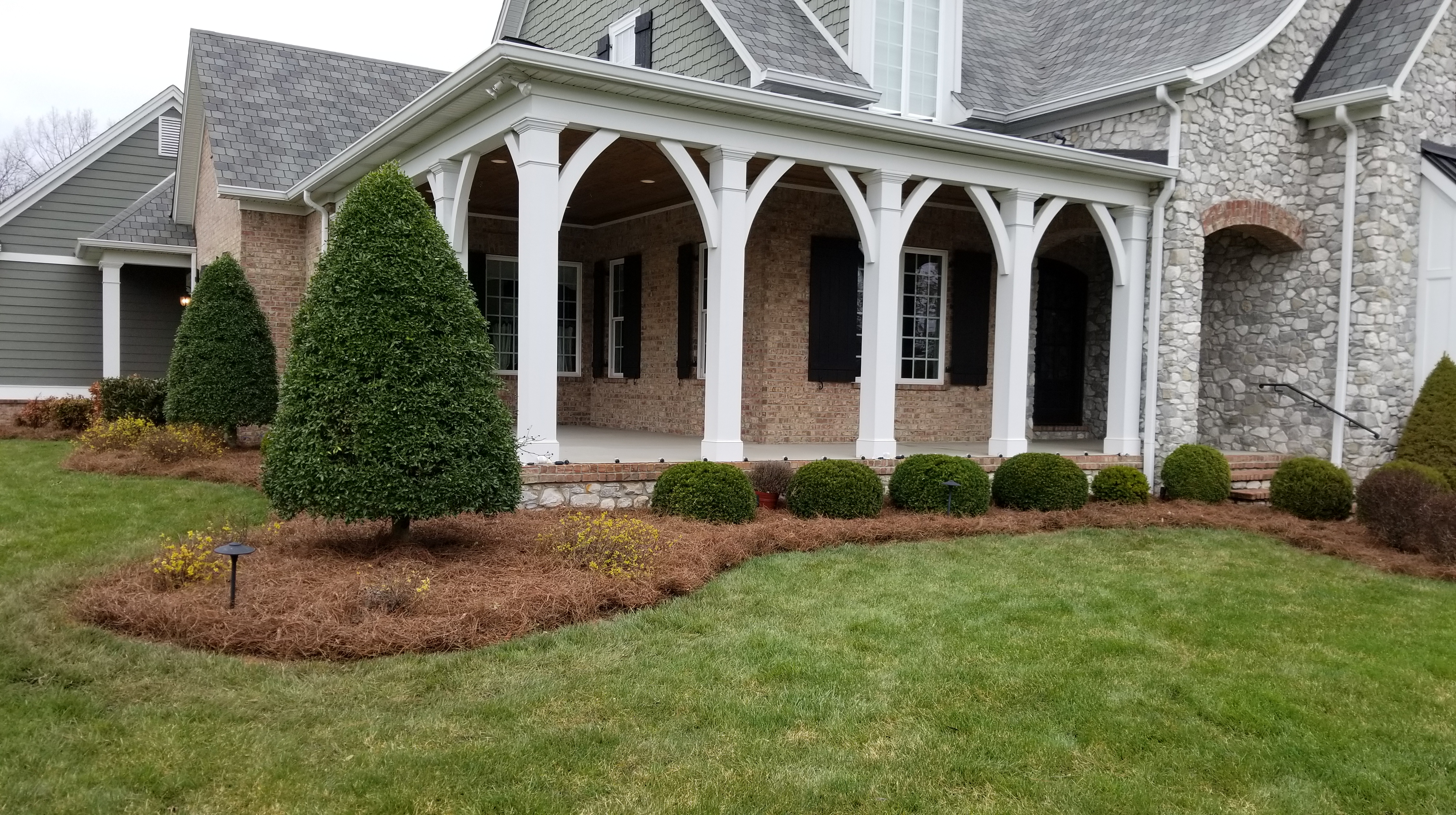 We can accomplish this through scheduled maintenance such as weekly lawn mowing, monthly or quarterly shrub trimming, bi-weekly bed maintenance and applying mulch or pine straw seasonally!
